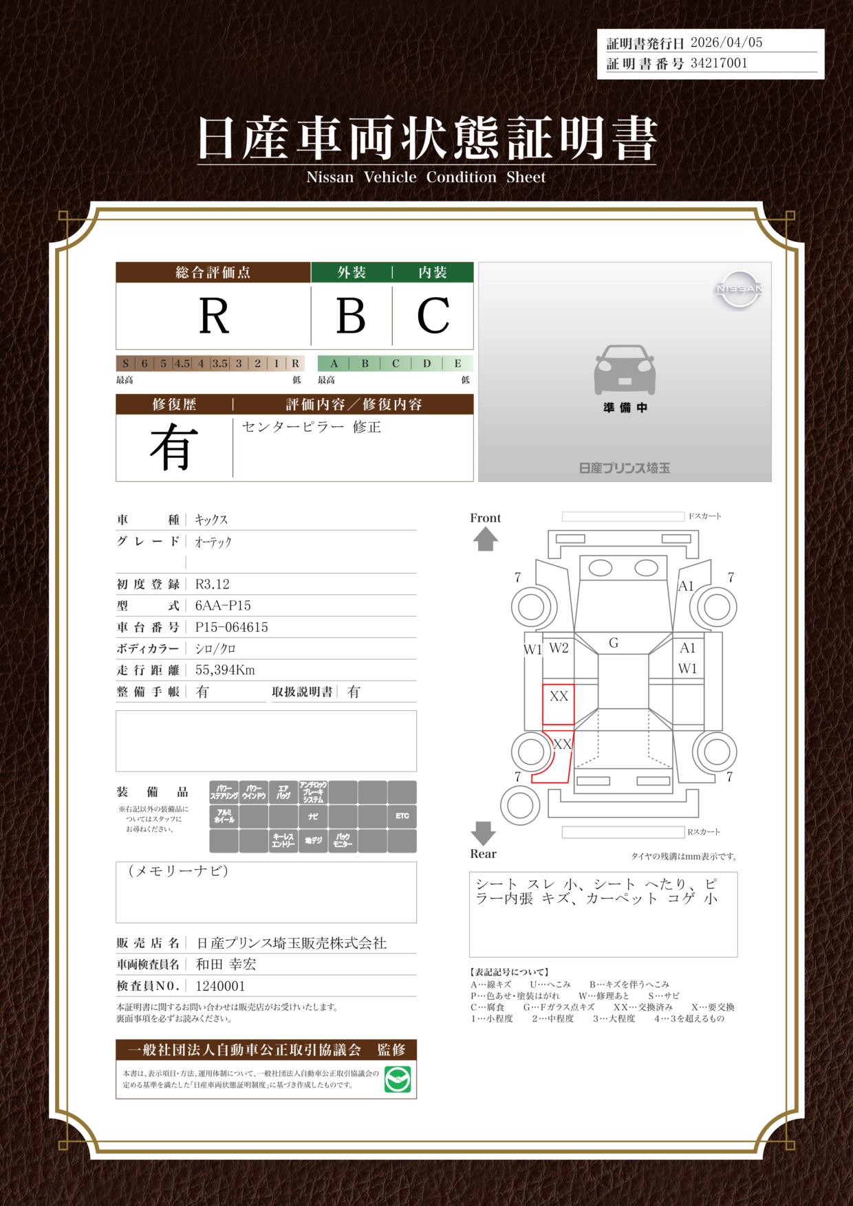 現状括弧書き内の年月まで車検有効期限が残っていますが、ご成約時に新しく車検を取り直します。なお取り直しの費用は車両価格に含まれています。