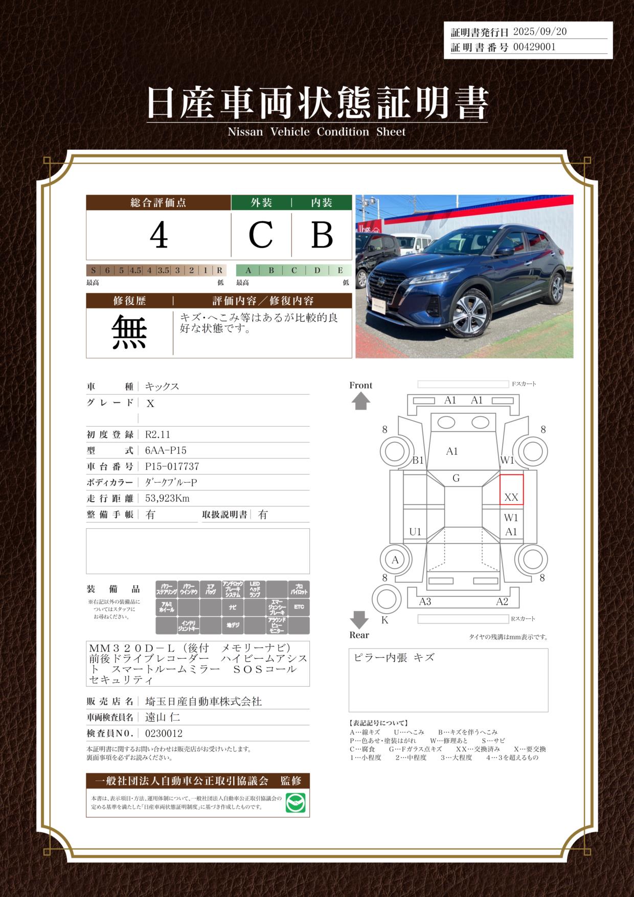 キックス 1200cc 1.2 X (e-POWER) メモリーナビ 全周囲モニター ETC2.0