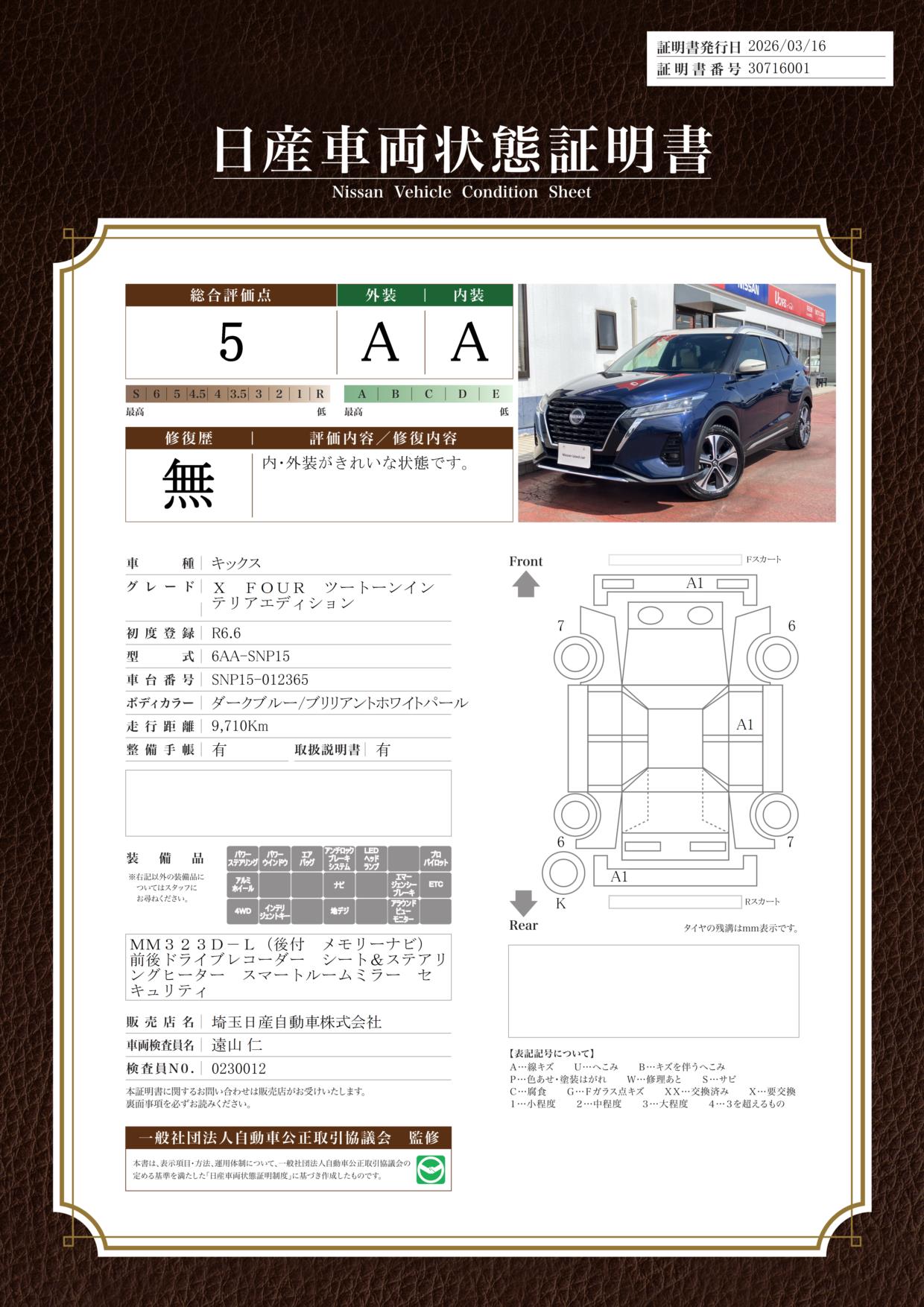 日産車両状態証明
