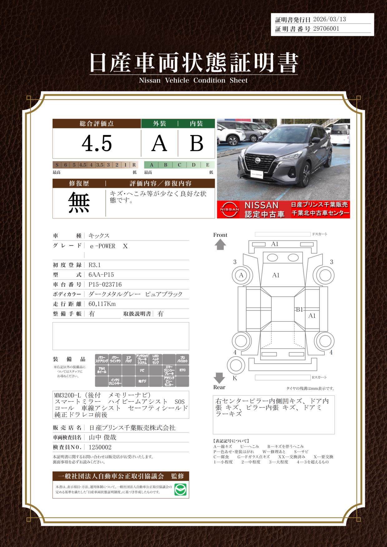 日産車両状態証明