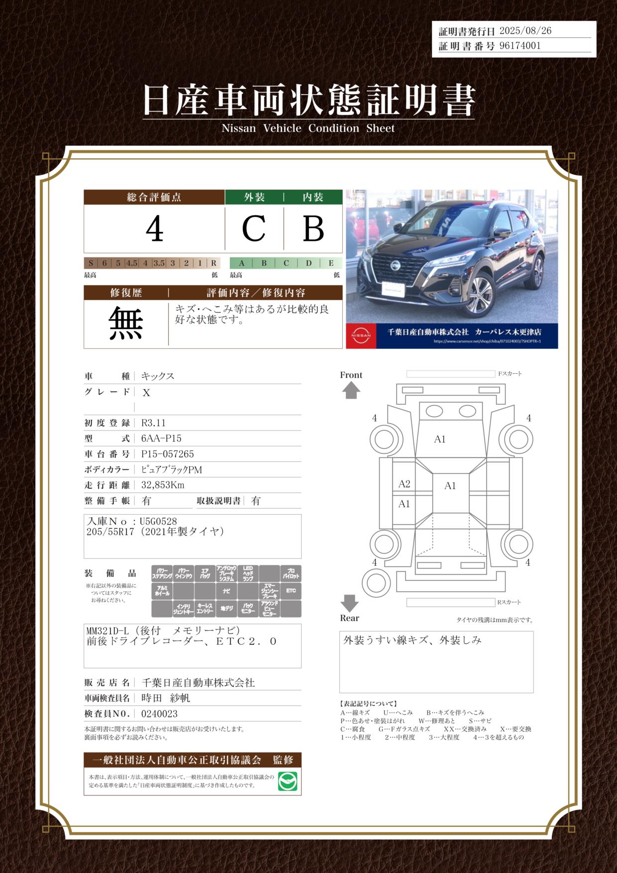 キックス 1200cc 1.2 X (e-POWER) 当社試乗車アップ 純正ナビ