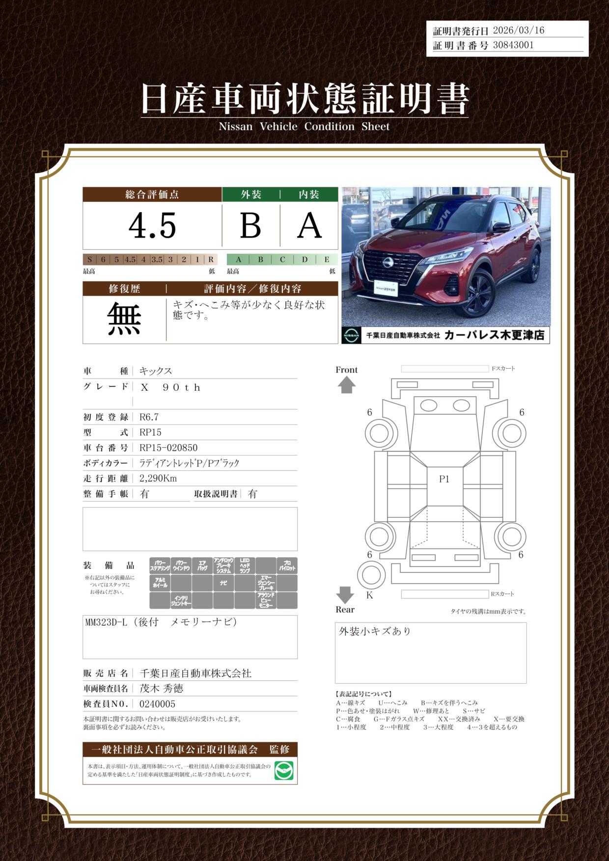 「車両状態証明書」は、査定協会監修のプロの検査員が公正かつ確かな基準で検査した”安心の証”です。