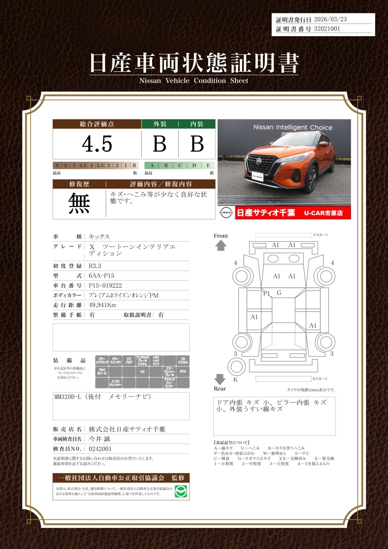 キックス 1200cc 1.2 X ツートーン インテリアエディション (e-POWER) 社有車UP/プロパイロット/純正9インチメモ