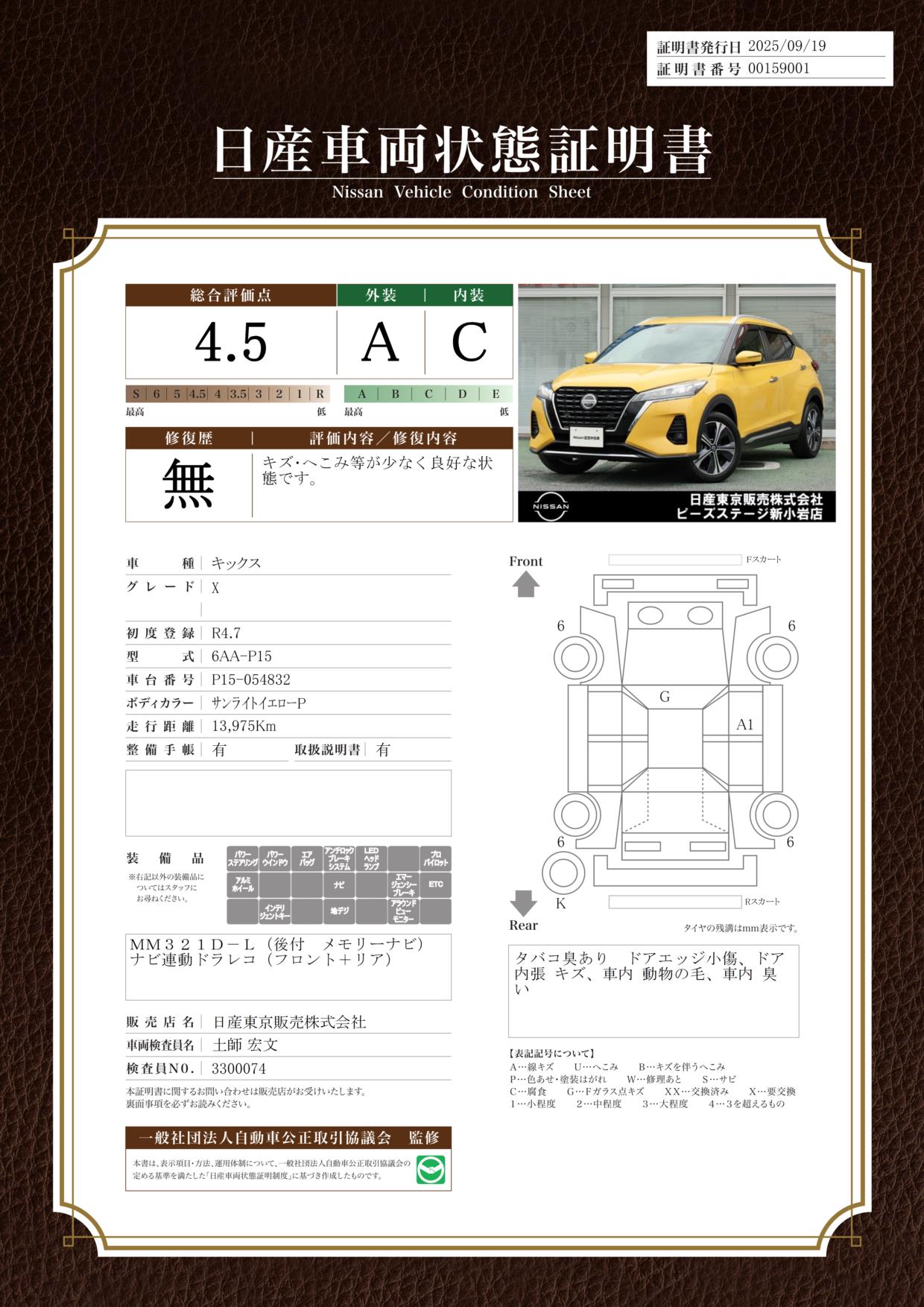 現状車検切れの状態ですが、ご成約時に新しく車検を実施します。車検費用は車両価格に含まれています。