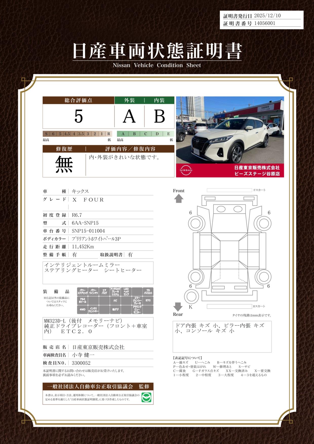 現状括弧書き内の年月まで車検有効期限が残っていますが、ご成約時に新しく車検を取り直します。なお取り直しの費用は車両価格に含まれています。