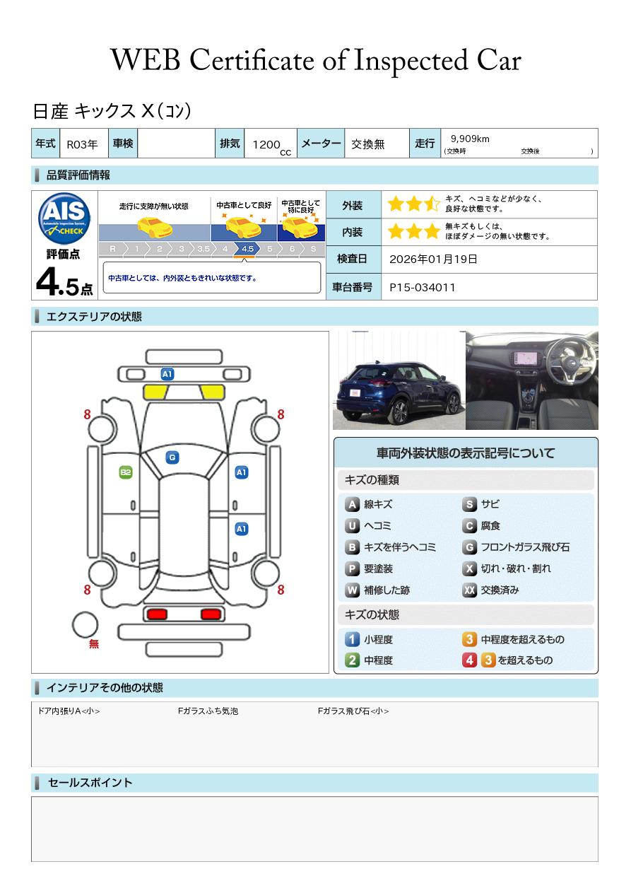 キックス 1200cc 1.2 X FOUR (e-POWER) 4WD 社用車 純正メモリーナビ SOSコール