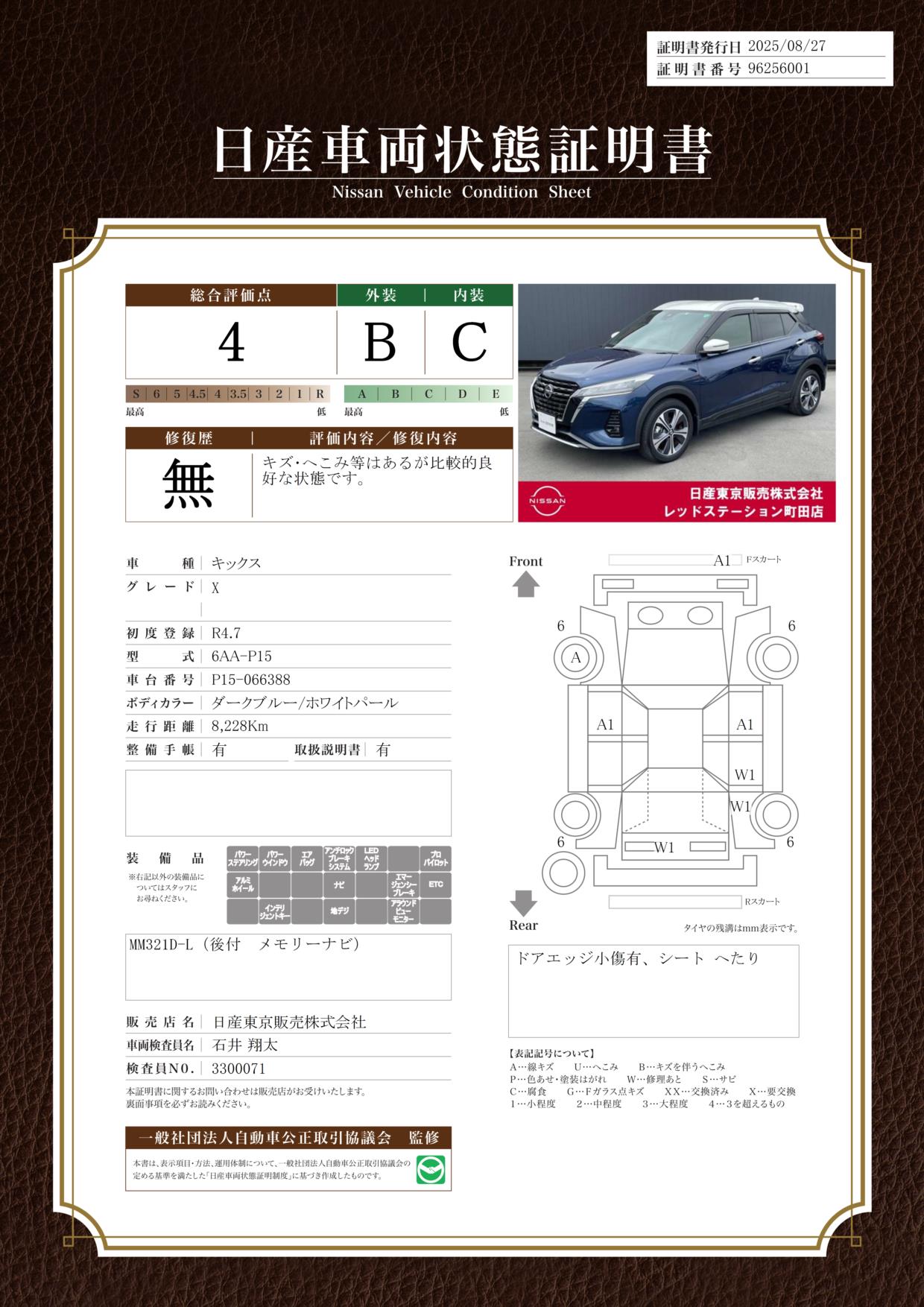 現状括弧書き内の年月まで車検有効期限が残っていますが、ご成約時に新しく車検を取り直します。なお取り直しの費用は車両価格に含まれています。