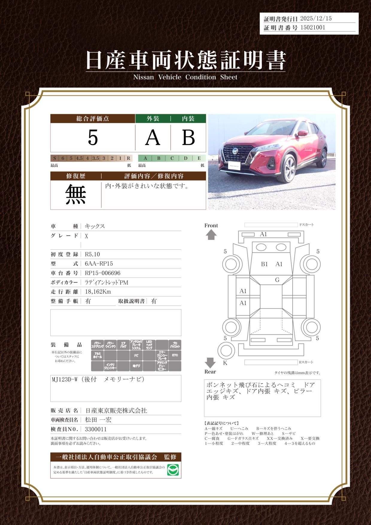 現状括弧書き内の年月まで車検有効期限が残っていますが、ご成約時に新しく車検を取り直します。なお取り直しの費用は車両価格に含まれています。