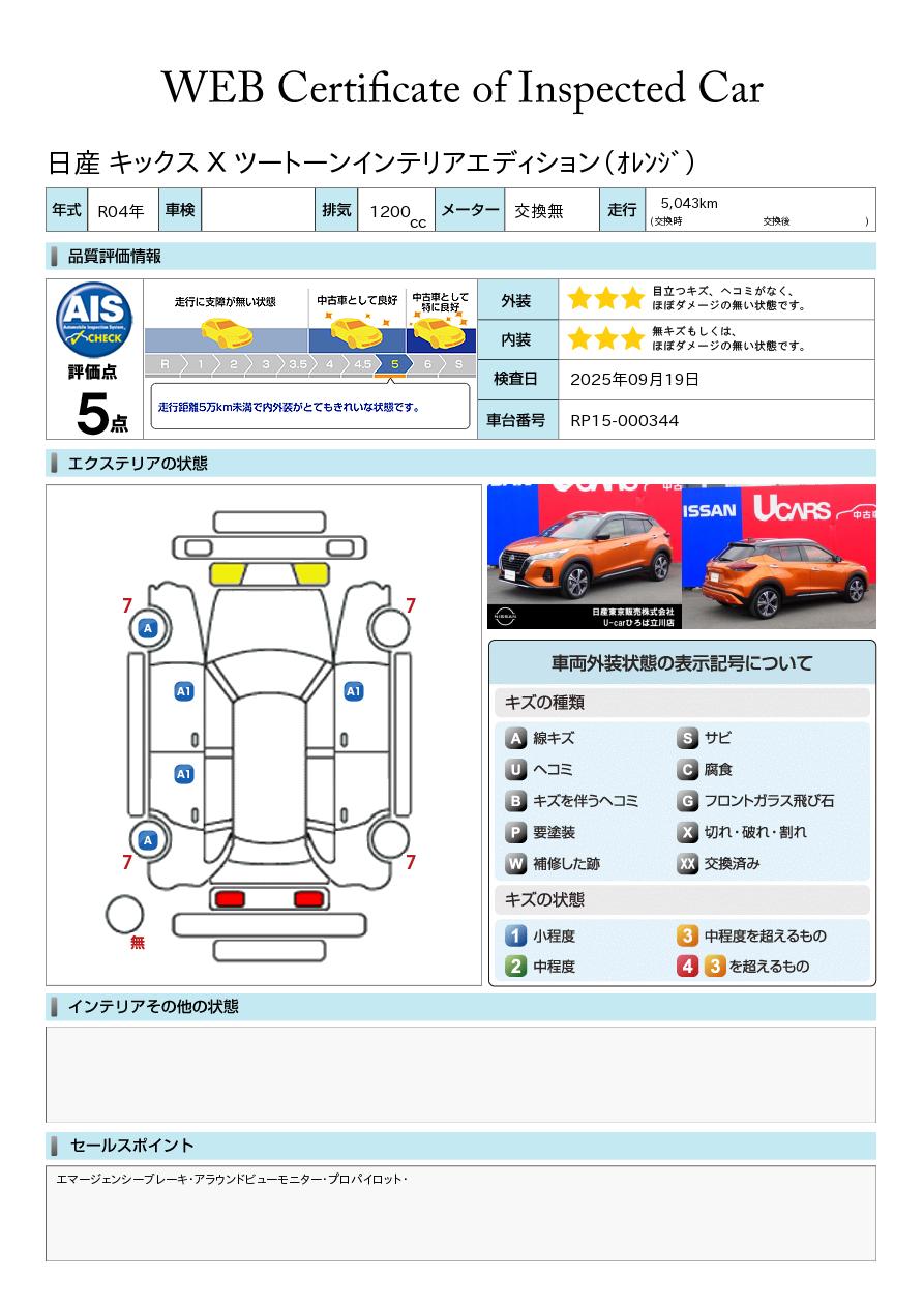 キックス 1200cc 1.2 X FOUR スタイルエディション(e-POWER) 4WD 当社試乗車 プラウンインテリアパッケージ