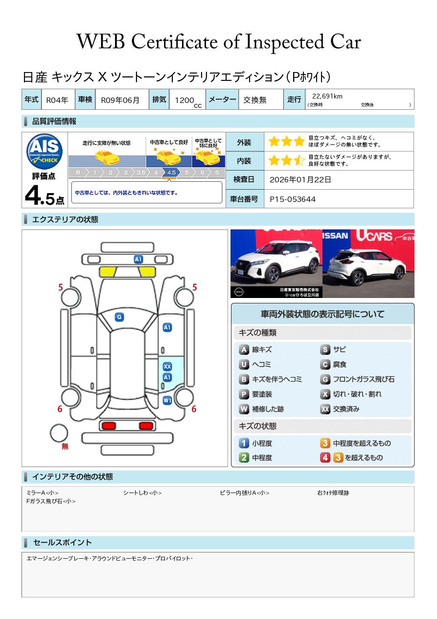 キックス 1200cc 1.2 X ツートーン インテリアエディション (e-POWER) 当社試乗車 プロパイ 純正メモリーナビ