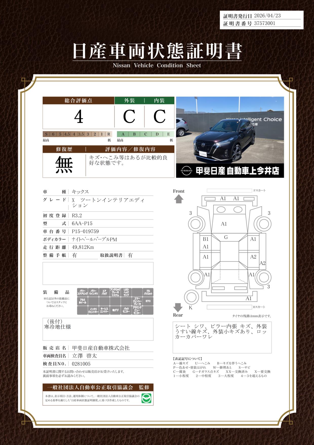 甲斐日産自動車 中古車 上今井店の展示車両には、分かりやすい金額表示を心がけております。 クレジットご希望であれば、ご予算に応じてシミュレーションをいたします。 気さくなスタッフがお待ちしていますので、ご来店の際は気軽に声を掛けてください。 あなたにぴったりな1台をお探しします! 「新型コロナ」の感染及び拡散防止の対応を徹底しています。