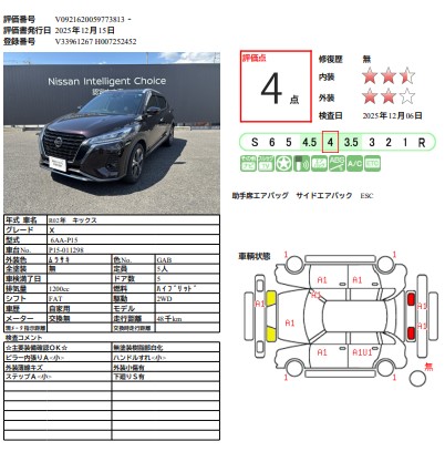 キックス 1200cc 1.2 X (e-POWER) プロパイロット/アラウンドビューモニター/