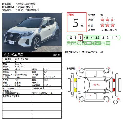 現状括弧書き内の年月まで車検有効期限が残っていますが、ご成約時に新しく車検を取り直します。なお取り直しの費用は車両価格に含まれています。