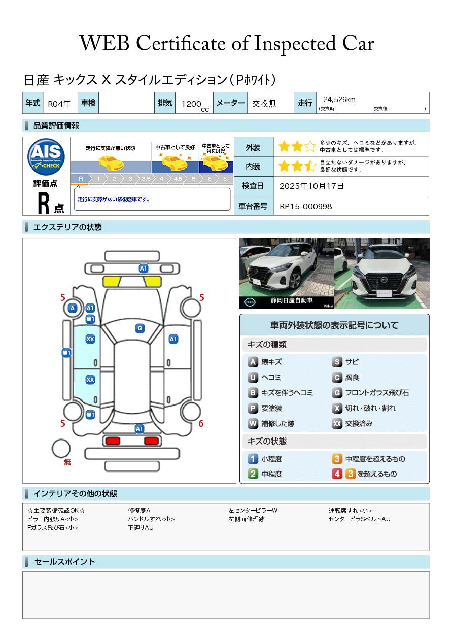 キックス 1200cc 1.2 X 90周年記念車 (e-POWER) 純正メモリーナビ アラウンドビューモニタ