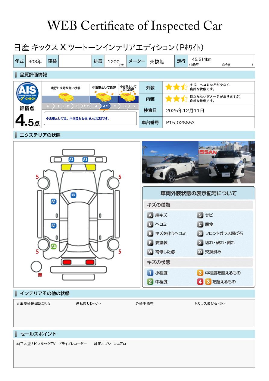現状括弧書き内の年月まで車検有効期限が残っていますが、ご成約時に新しく車検を取り直します。なお取り直しの費用は車両価格に含まれています。