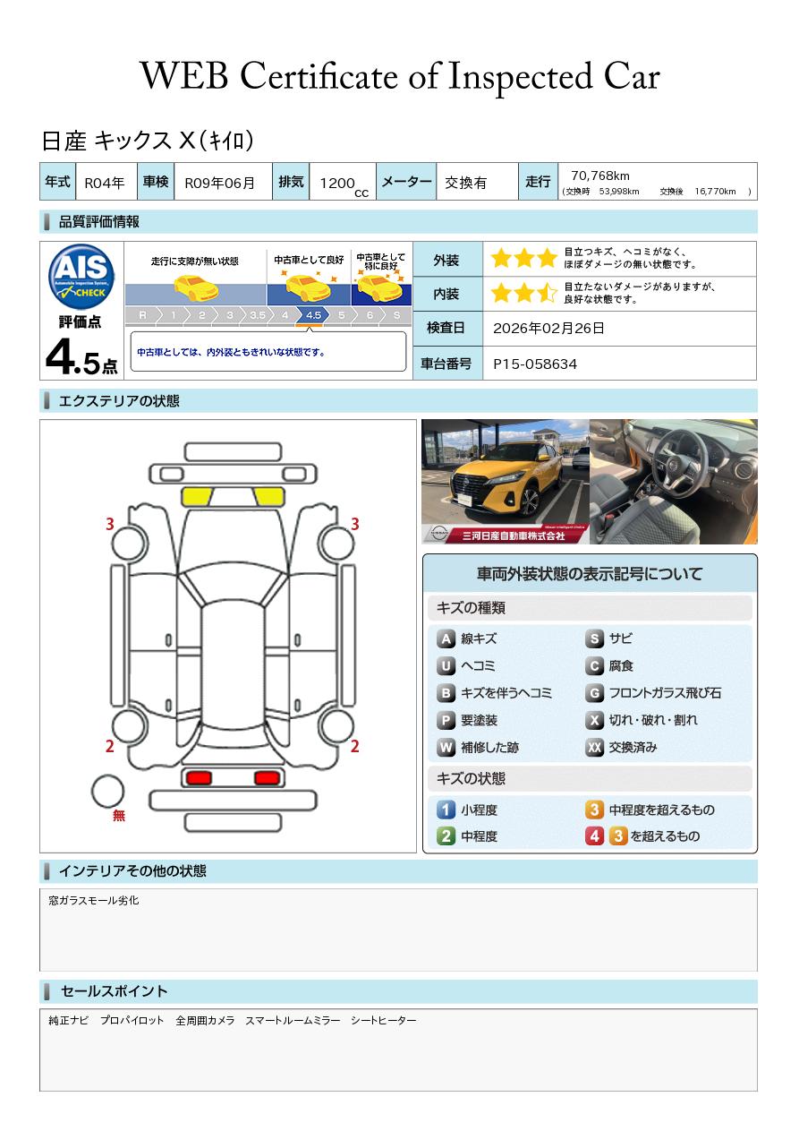 現状括弧書き内の年月まで車検有効期限が残っていますが、ご成約時に新しく車検を取り直します。なお取り直しの費用は車両価格に含まれています。