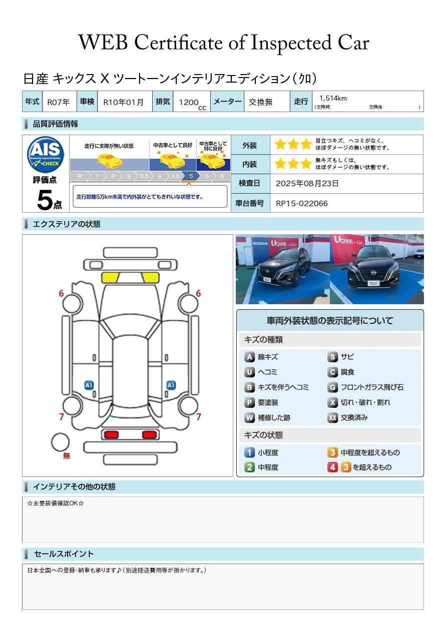 キックス 1200cc 1.2 X ツートーン インテリアエディション (e-POWER) 当社社有車アップ プロパイロット 純正前
