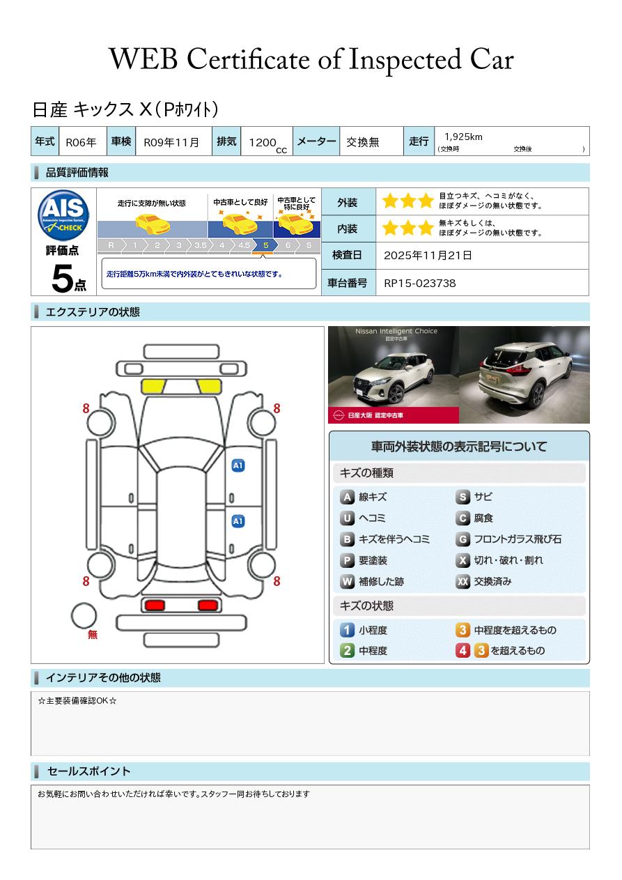 現状括弧書き内の年月まで車検有効期限が残っていますが、ご成約時に新しく車検を取り直します。なお取り直しの費用は車両価格に含まれています。