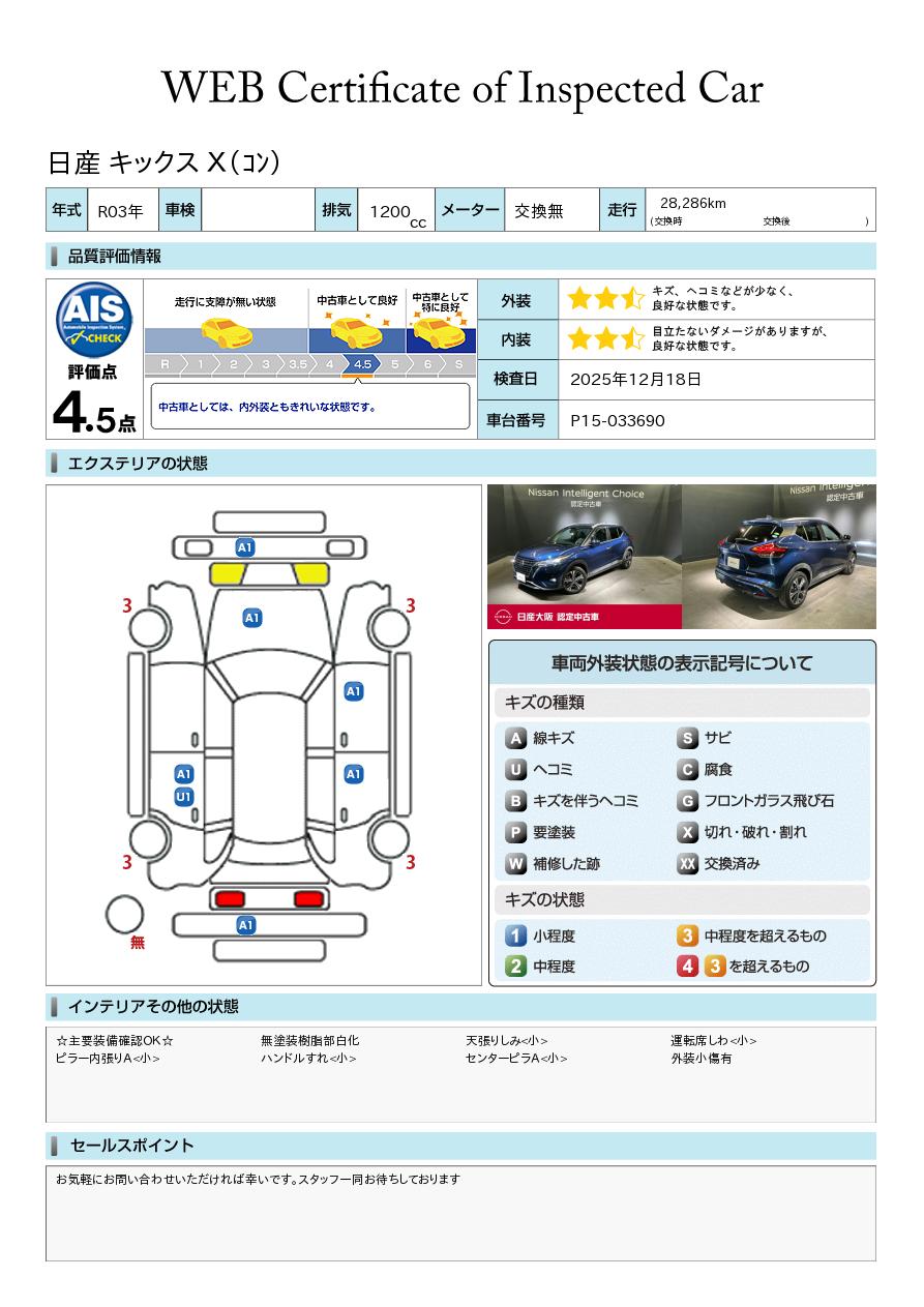 日産自動車認定の中古車販売店です。