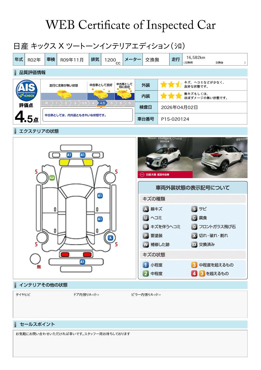 現状括弧書き内の年月まで車検有効期限が残っていますが、ご成約時に新しく車検を取り直します。なお取り直しの費用は車両価格に含まれています。