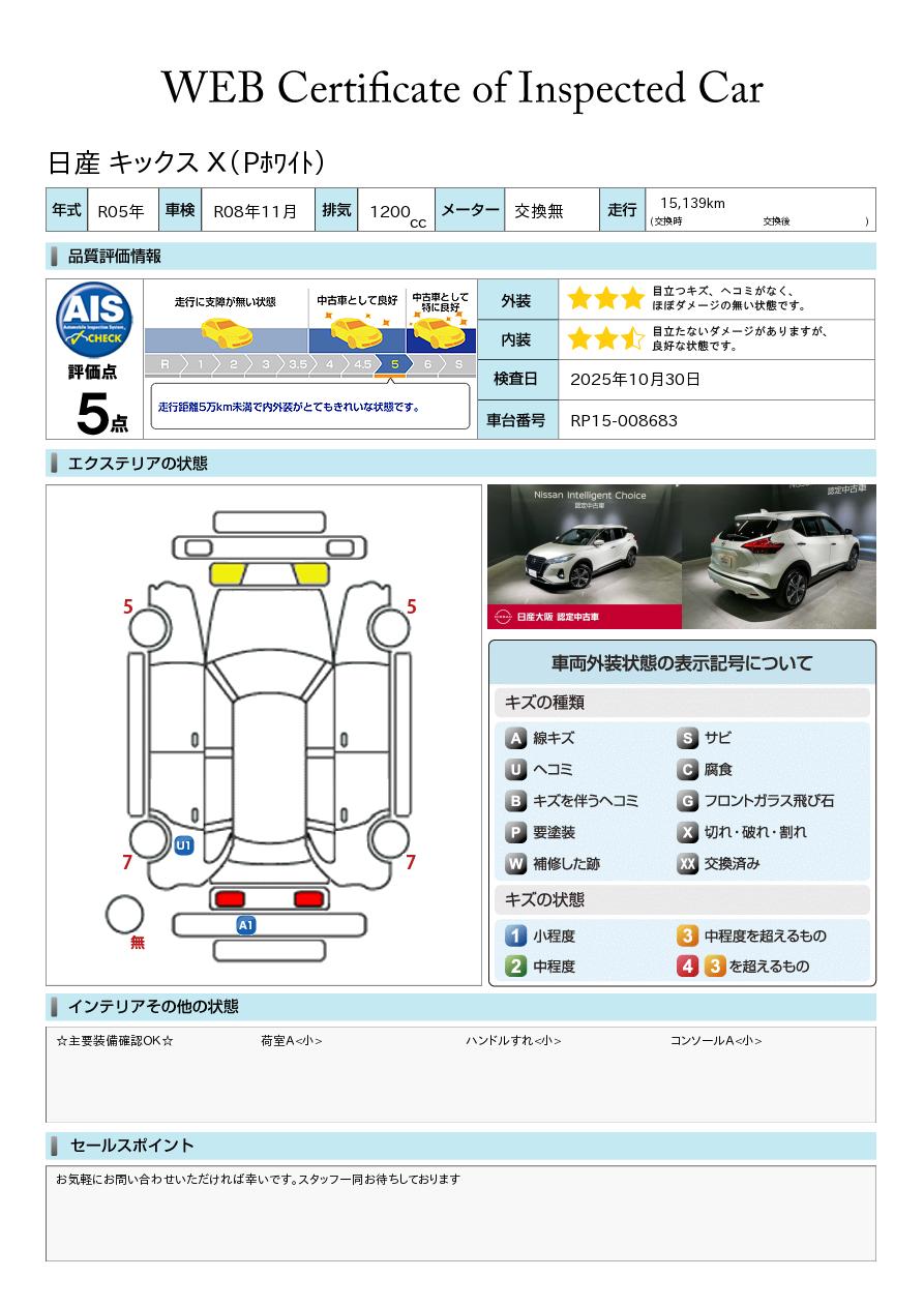 現状括弧書き内の年月まで車検有効期限が残っていますが、ご成約時に新しく車検を取り直します。なお取り直しの費用は車両価格に含まれています。
