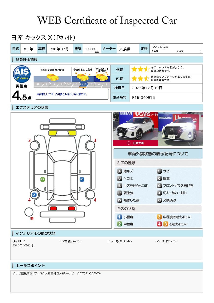 現状括弧書き内の年月まで車検有効期限が残っていますが、ご成約時に新しく車検を取り直します。なお取り直しの費用は車両価格に含まれています。