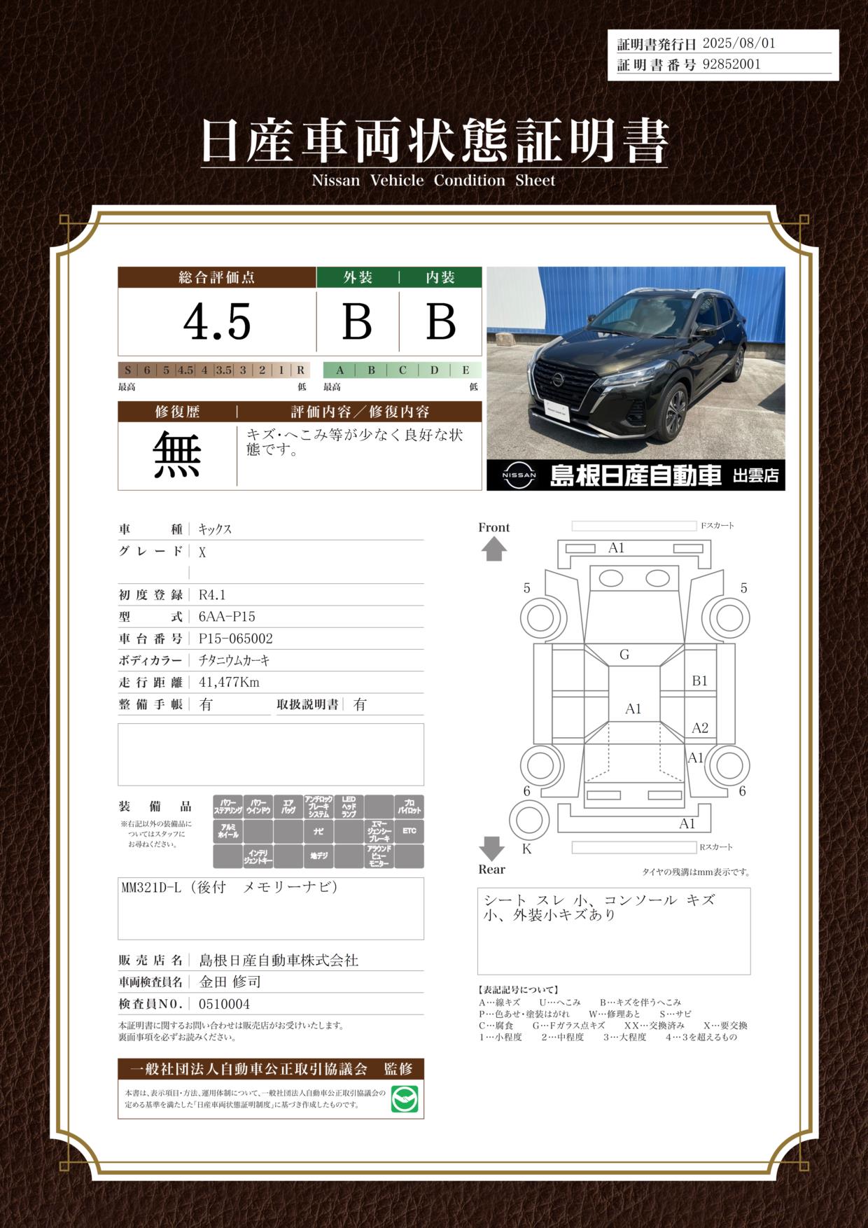 キックス 1200cc 1.2 X (e-POWER) 弊社下取りワンオ-ナ-車