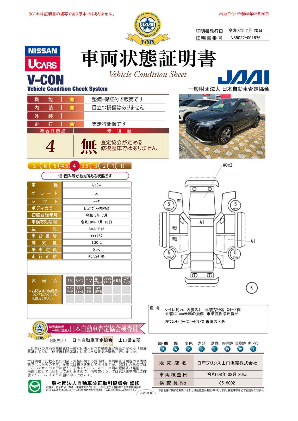 車両状態証明書を見る