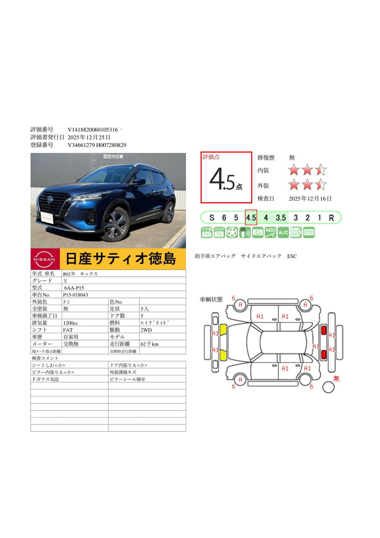 評価点イメージ : 中古車としては、内外装ともきれいな状態です。