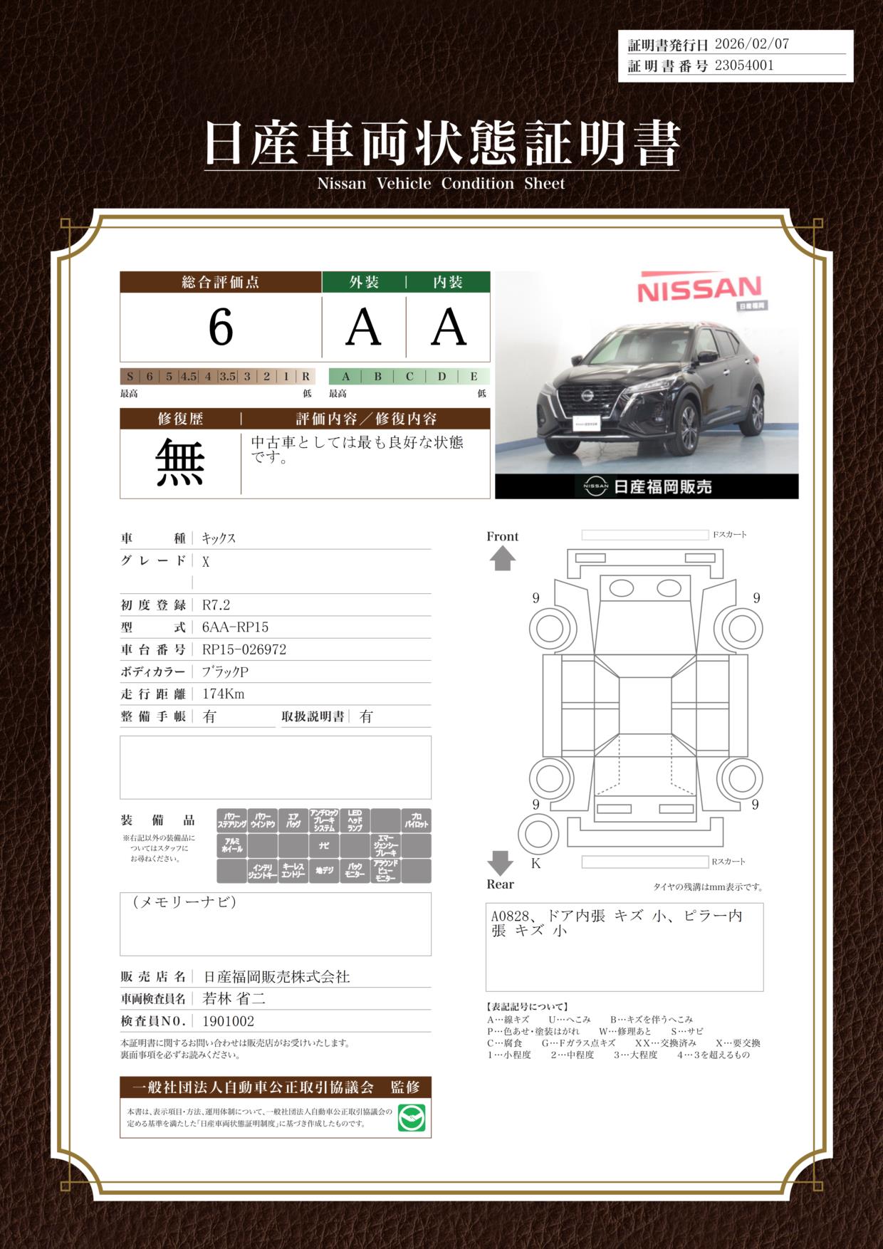 キックス 1200cc 1.2 X (e-POWER) 当社試乗車UP 純正ナビ