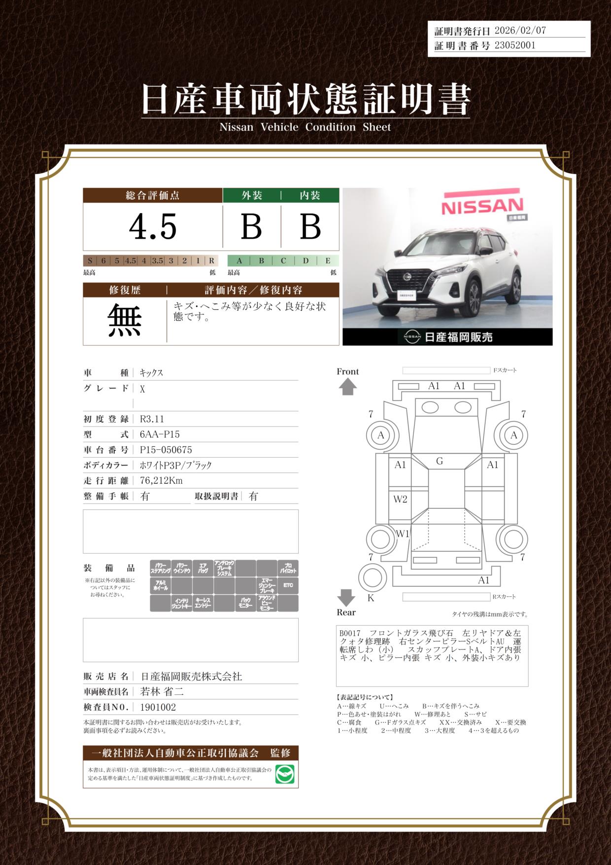 キックス 1200cc 1.2 X ツートーン インテリアエディション (e-POWER) ブラウン内装 当社社用車UP 純正ナビ
