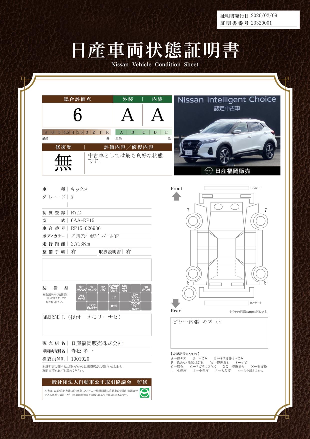 日産キックスX入荷しました。メモリーナビ・アラウンドビューモニター・プロパイロット・スマートルームミラー装備。