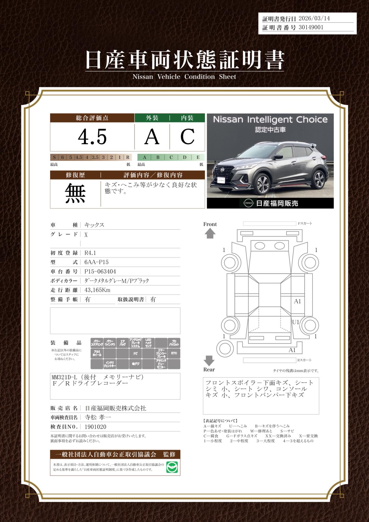 日産キックスX入荷しました。メモリーナビ・アラウンドビューモニター・プロパイロット・ETC2.0・スマートルームミラー装備。