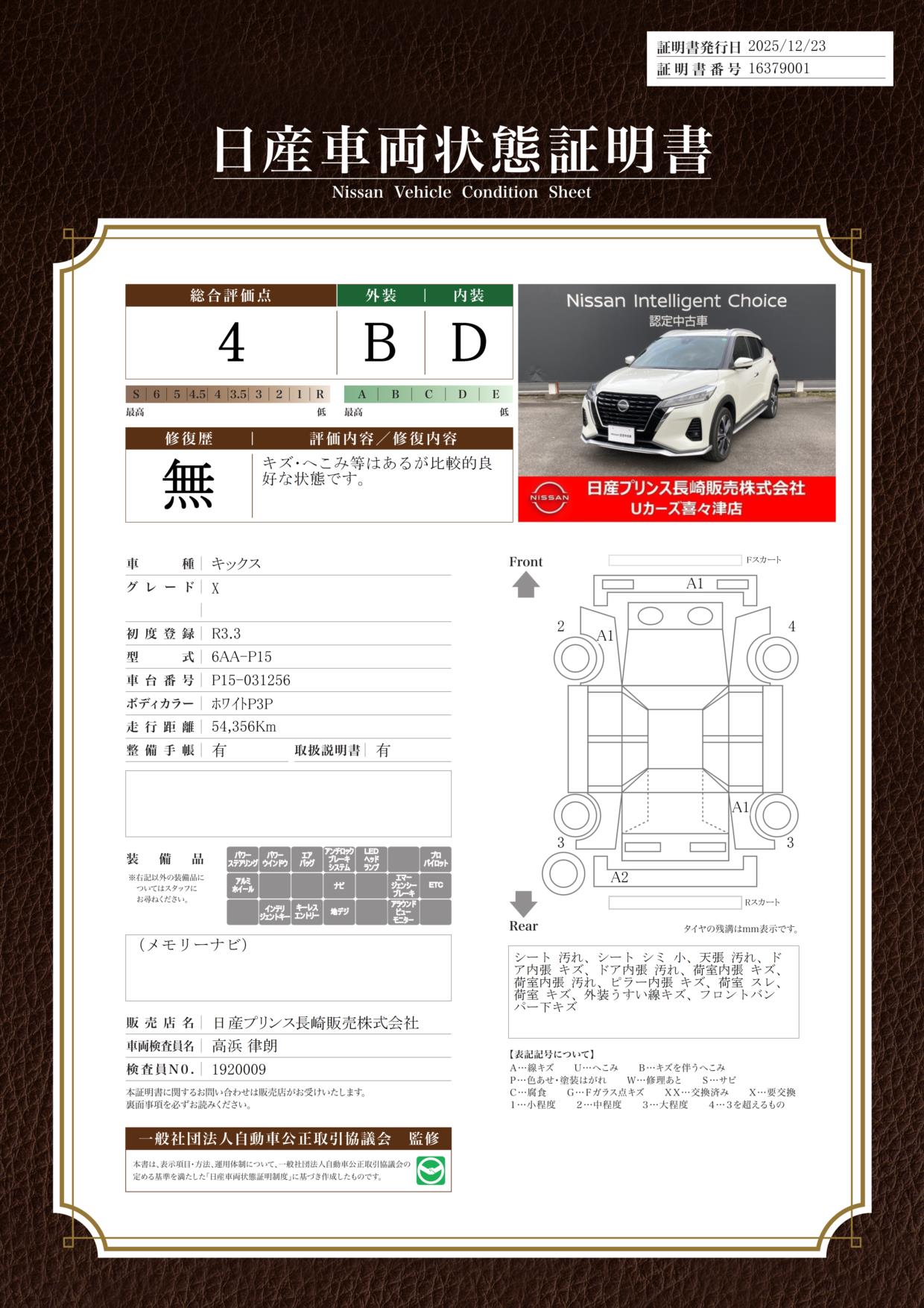 日産自動車認定の中古車販売店です。