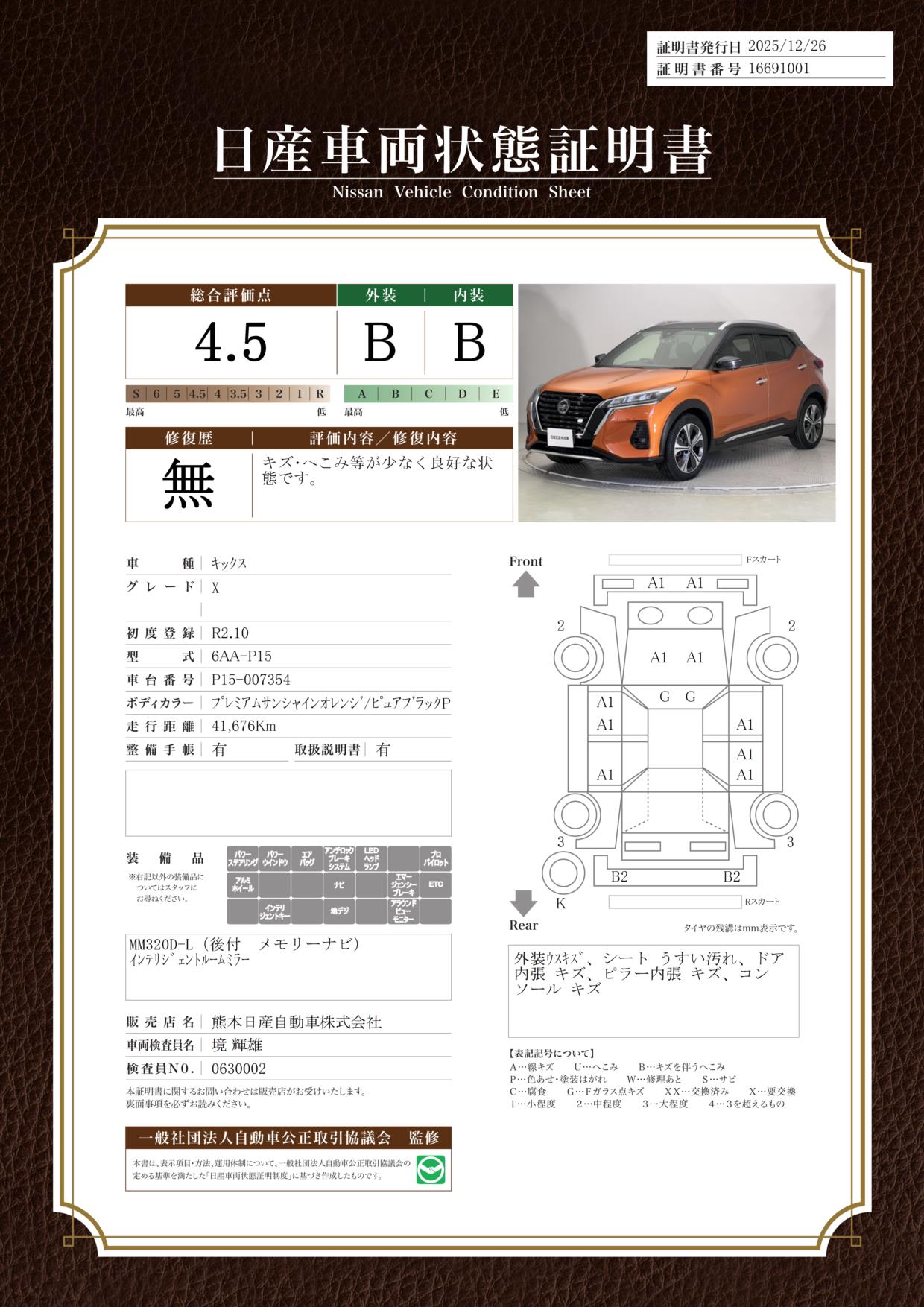 現状括弧書き内の年月まで車検有効期限が残っていますが、ご成約時に新しく車検を取り直します。なお取り直しの費用は車両価格に含まれています。