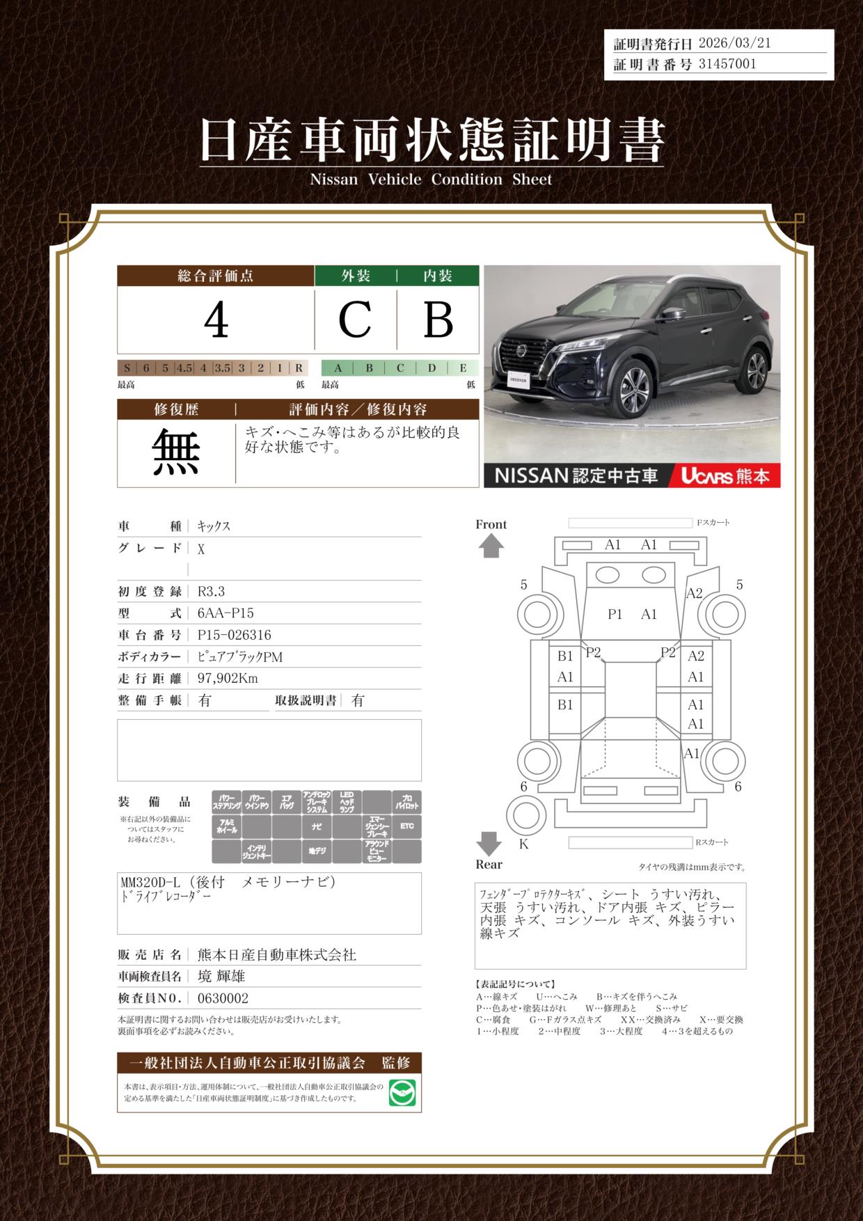2021年式 キックス 入庫しました!前後ドライブレコーダー★アラウンドビューモニター★プロパイロット★ETC★ディーラー保証★