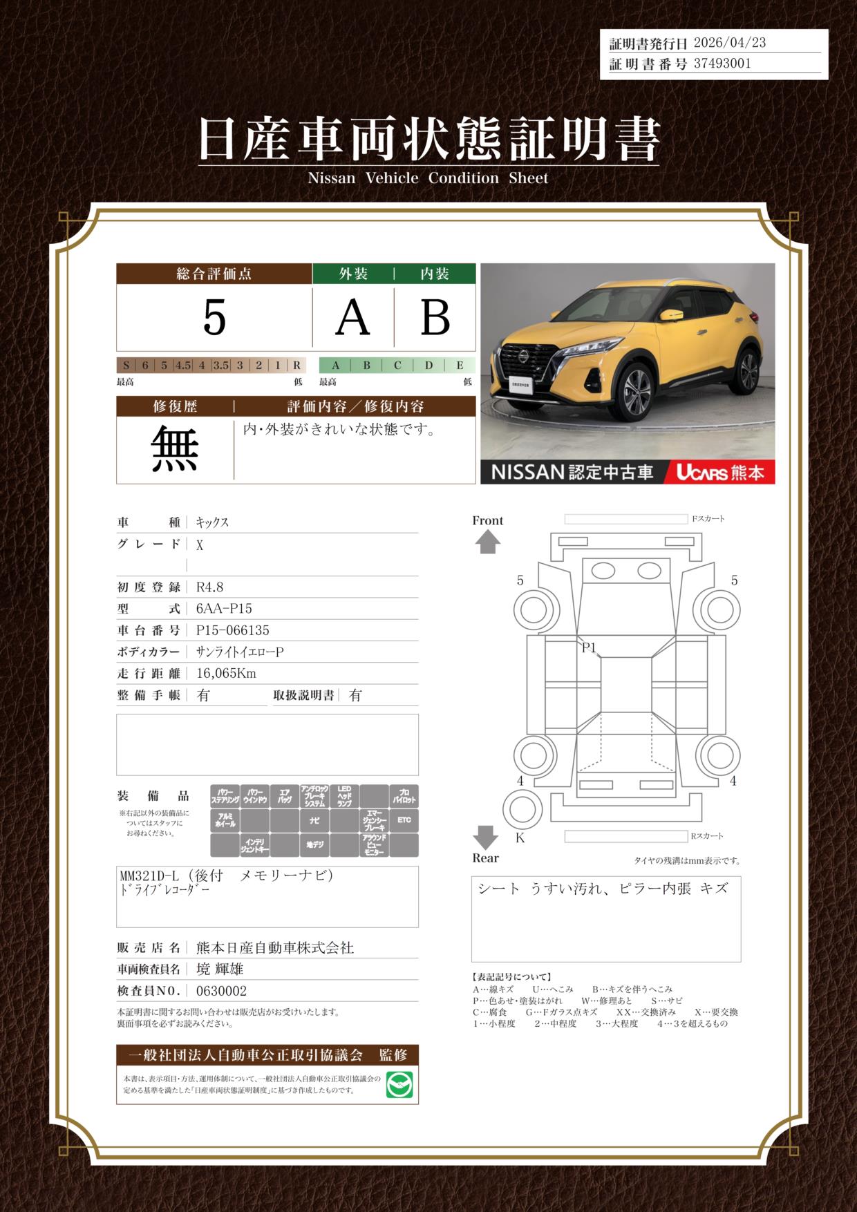 キックス1.2 X (e-POWER) アラウンドモニター ドラレコ ETC LED