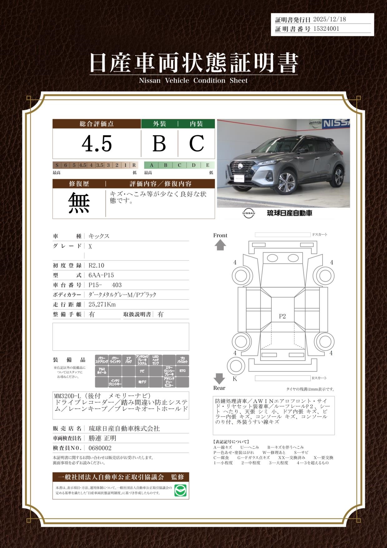 ご覧頂きありがとうございます。 県内唯一のプレミアム認定中古車取り扱い店として、経験豊富なカーライフアドバイザーがしっかりとサポートさせていただきます!スタッフ一同ご来店を心よりお待ちしております! ※年末年始休業のお知らせ【2025年12月28日(日)から2026年1月4日(日)まで休業】初売りは2026年1月5日(月)から!■琉球日産全店合同【2026年新春初売りセール】開催!各店限定特選車等含め45台の特選車をご用意してお待ちしております。