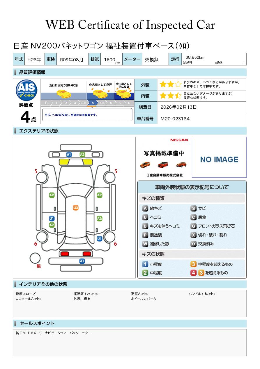 現状括弧書き内の年月まで車検有効期限が残っていますが、ご成約時に新しく車検を取り直します。なお取り直しの費用は車両価格に含まれています。