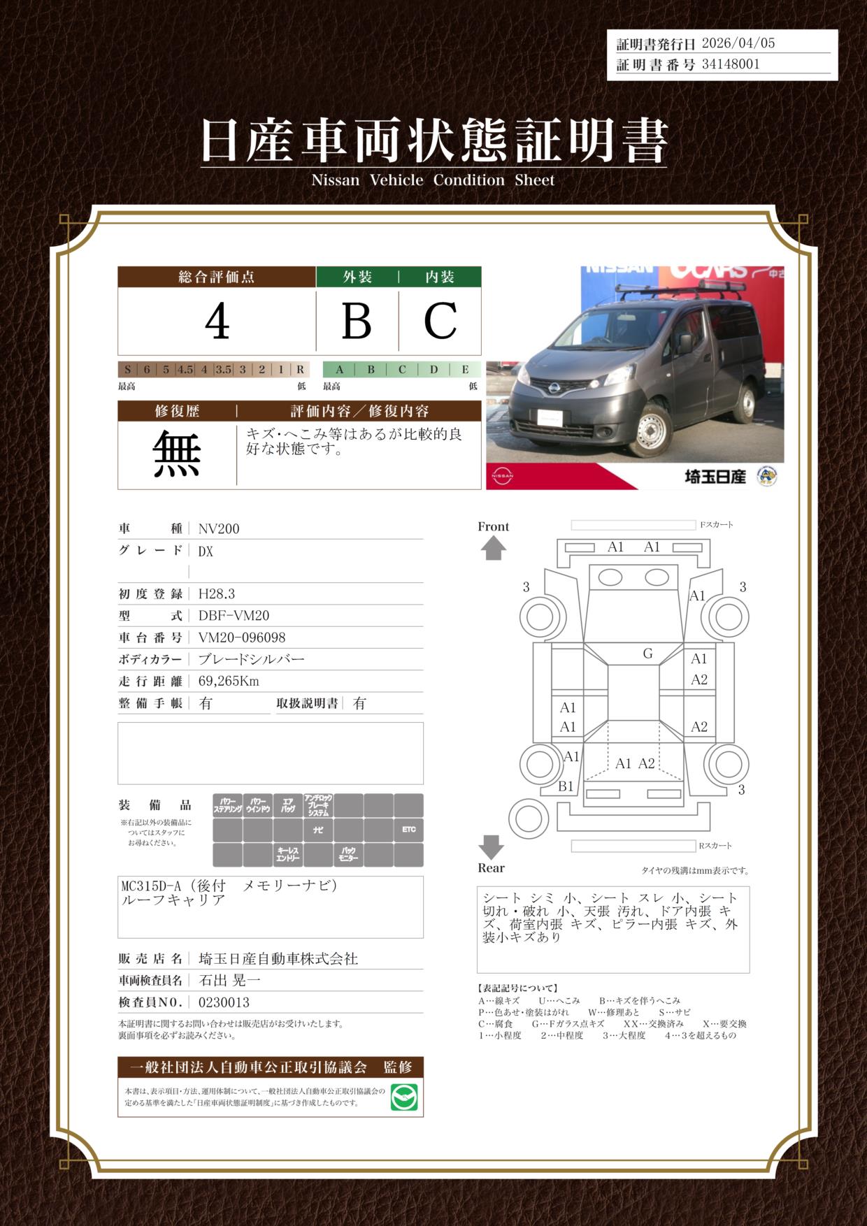 現状車検切れの状態ですが、ご成約時に新しく車検を実施します。車検費用は車両価格に含まれています。