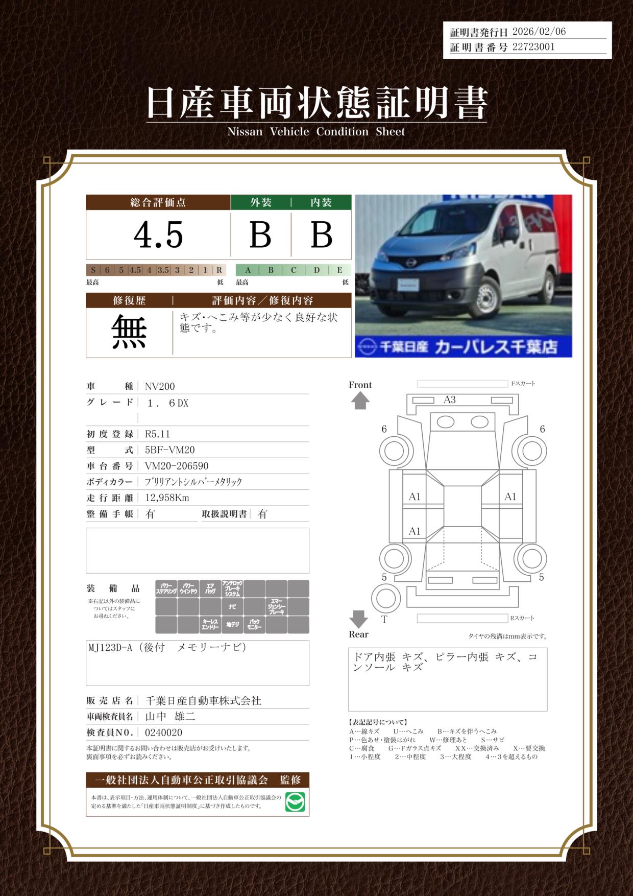 NV200バネットバン 1600cc 1.6 VX 社外メモリーナビ・バックカメラ・ETC