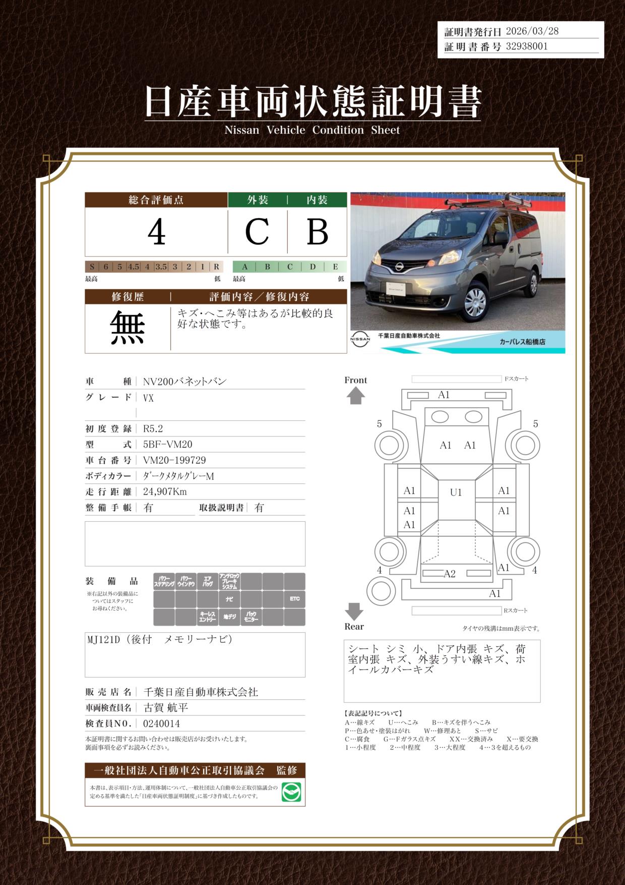 現状括弧書き内の年月まで車検有効期限が残っていますが、ご成約時に新しく車検を取り直します。なお取り直しの費用は車両価格に含まれています。