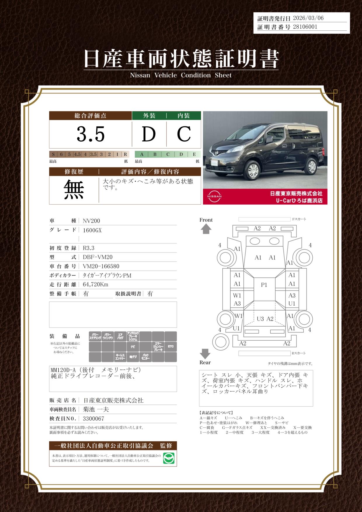 NV200バネットバン 1600cc 1.6 DX ルーフキャリア+ETC+ドラレコ+エマブレ