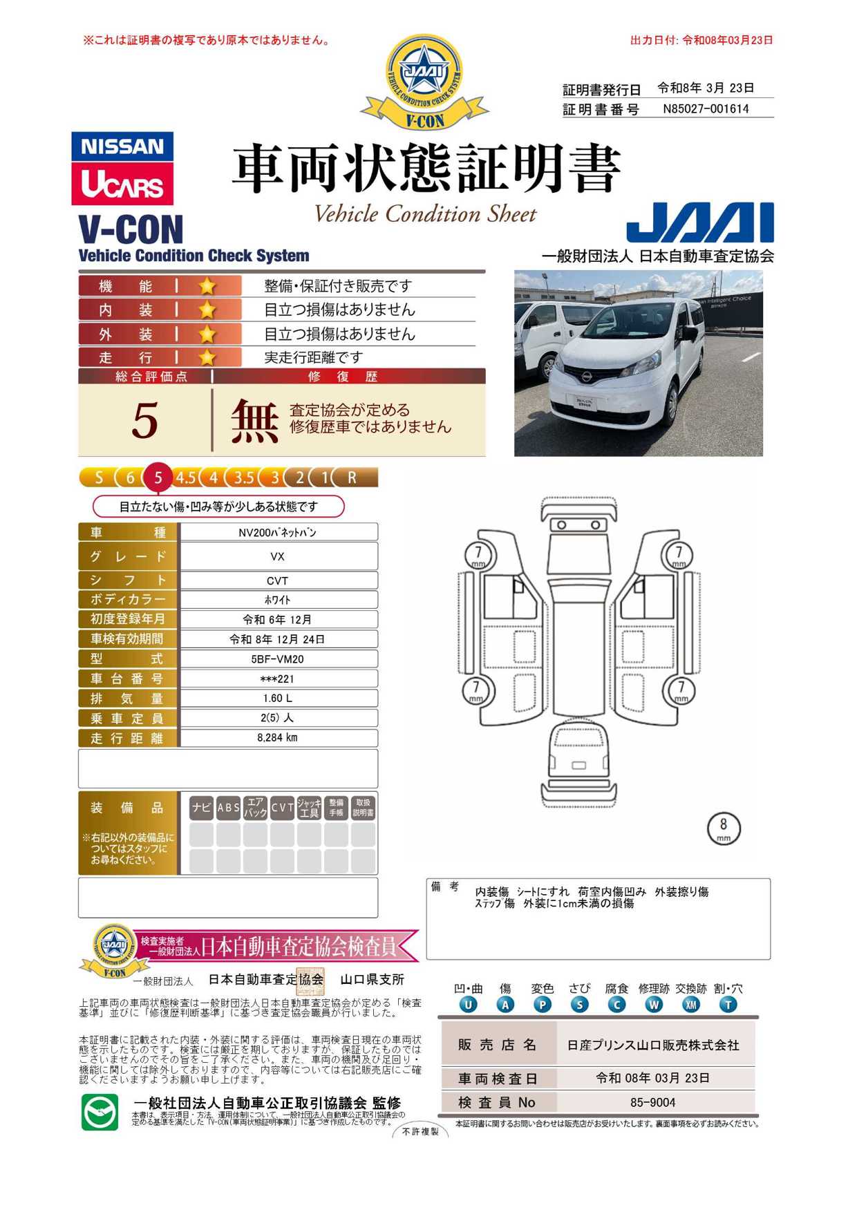 「車両状態証明書」は、査定協会監修のプロの検査員が公正かつ確かな基準で検査した”安心の証”です。