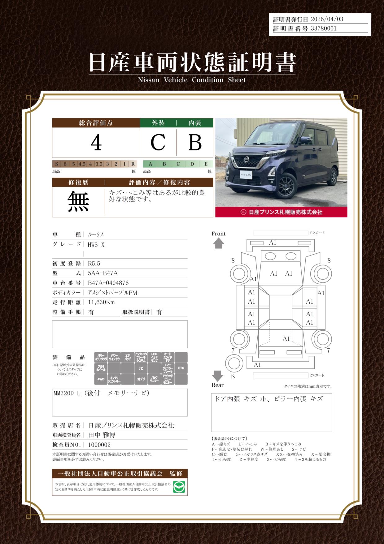 ルークス 660cc 660 ハイウェイスターX プロパイロット エディション 4WD 日産ディーラーオプション9インチナビ/アラ