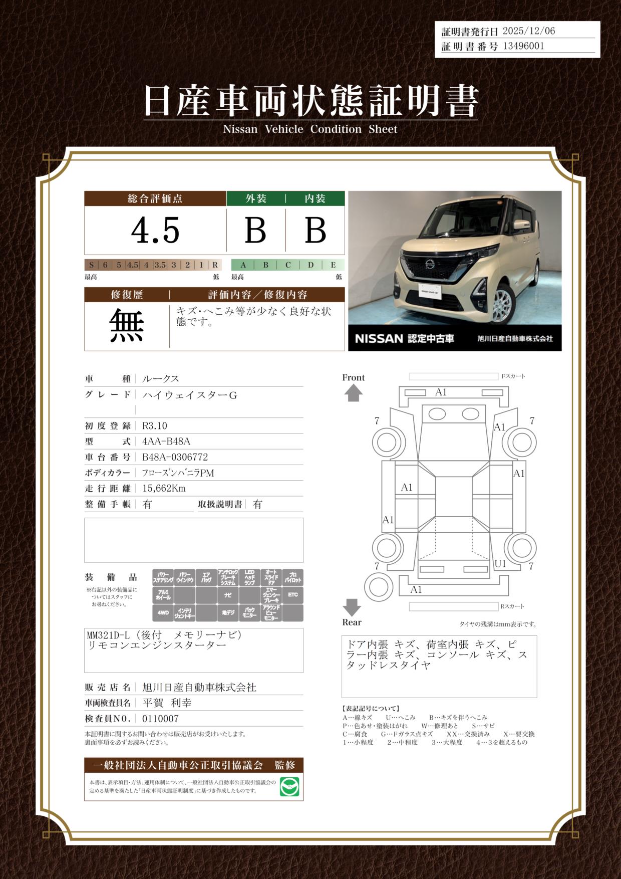 現状括弧書き内の年月まで車検有効期限が残っていますが、ご成約時に新しく車検を取り直します。なお取り直しの費用は車両価格に含まれています。
