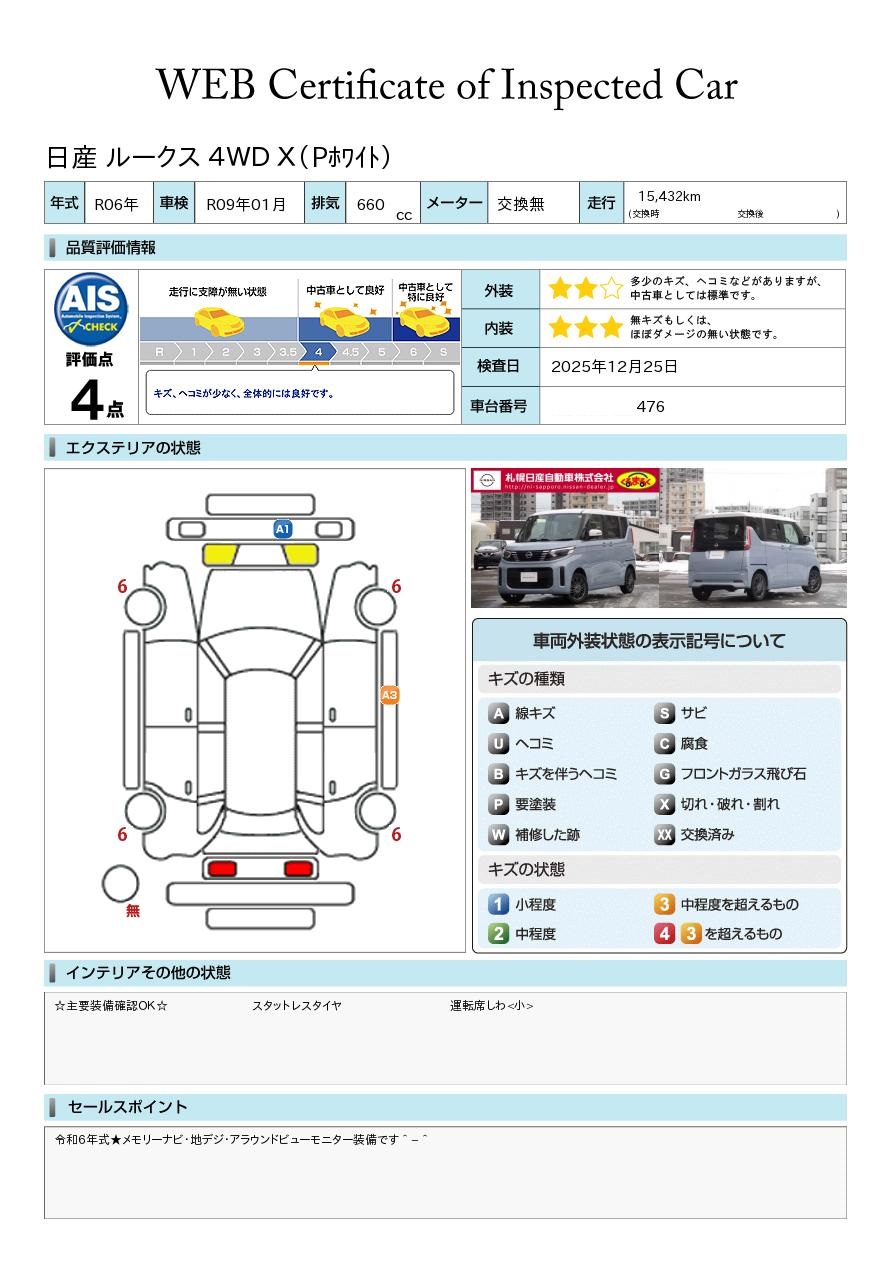 ルークス 660cc 660 X 4WD アラウンドビューモニター・エマージェンシ