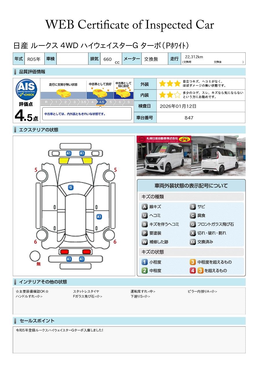 現状括弧書き内の年月まで車検有効期限が残っていますが、ご成約時に新しく車検を取り直します。なお取り直しの費用は車両価格に含まれています。