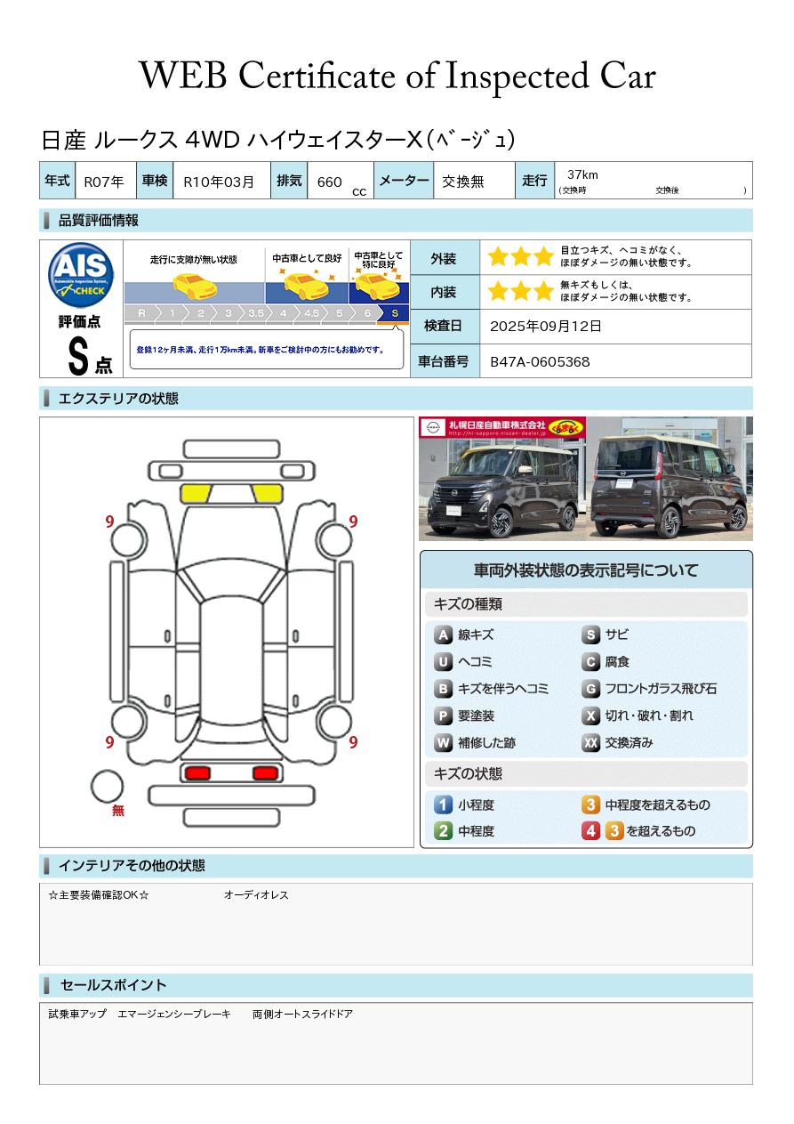 日産車は勿論のこと他メーカーでもコンパクト車からワゴン車まで幅広く展示中! 「くるまるく」店の中でもスケールの大きい店舗ですので、在庫数も豊富に常時90台~100台展示中! AIS評価書付車両(第三者評価書)も多数ございますので、ご安心ください♪ 安心の日産「ワイド保証」や「自社ピット」完備! スタッフ一同お待ち申し上げております^^ 全車走行メーター管理システム導入☆(日本オートオークション協議会)