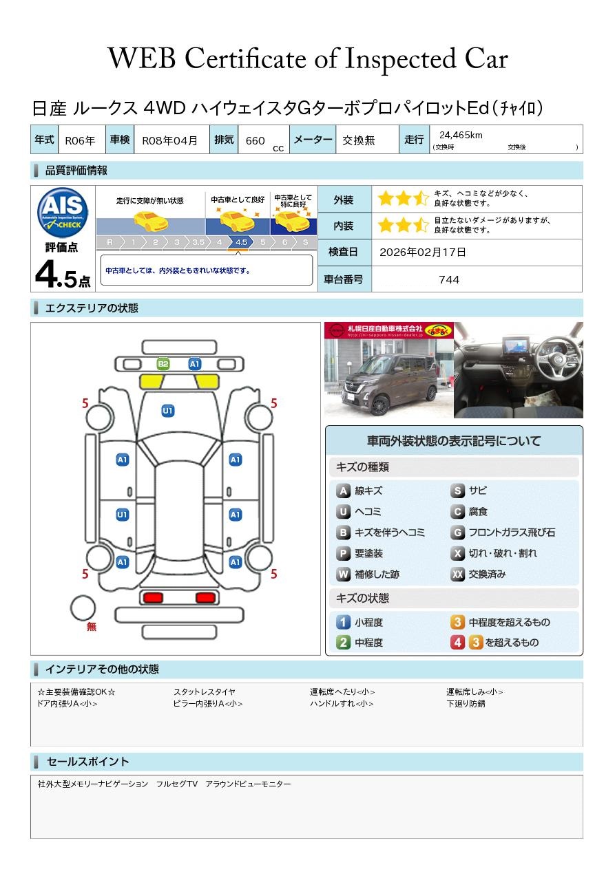 現状括弧書き内の年月まで車検有効期限が残っていますが、ご成約時に新しく車検を取り直します。なお取り直しの費用は車両価格に含まれています。